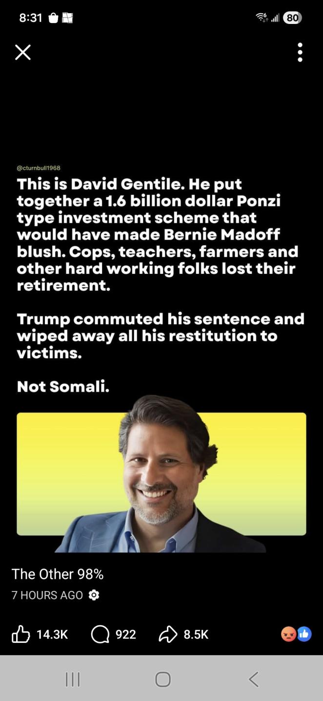 So your all in on the open borders and unvetted immigration.Originally posted by chuckChuck View PostWhen white folks commit fraud do you blame the entire group based on country of origin and skin colour? No you don't but when they are black and brown of course you righties do!