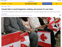 Just read an article in the National Post. Canada dropped to 25th in the happiness rating from 18th. The experts are all blaming social media. Apparently it only makes North Americans less happy. Funny that 10 years of Justin Trudeau, the Prime Minister that young people elected to legalize marijuana didn’t make Canadians happier. Personally I think all the media doomsday predictions about the climate backed up by all of our institutions of higher learning doing the same combined with the much higher cost of living has made our youth very unhappy. When I was young over 40 years ago, the future looked bright. Society celebrated success. Hard work payed off. Housing and food were affordable.