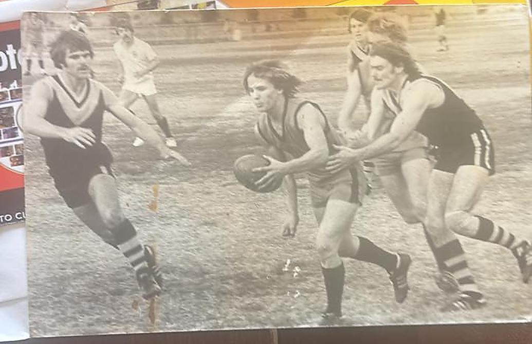 going though heaps of photos hundreds for moms funeral found a few from my football days and some mates came around to pass on condolences and saw them "ya remember when".....one such night football 1.30 Saturday arvo 4 of us one guys name hoody wanders in at 5.30 am shit we've gotta play footy this arvo hole heck cold shower few Panadol get home few hours sleep then play but errrr we were 250 kms away at 5.30 am those were the days. Tis me probably 18/19